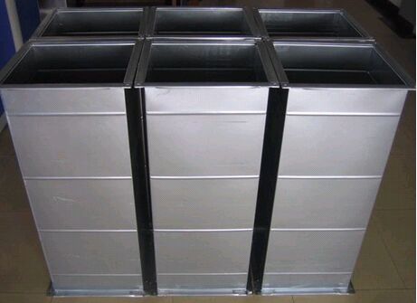 酚醛鋁箔復(fù)合風(fēng)管壁的夾層為相互貫通的多孔酚醛泡沫材料板,具有良好的消聲性能。在中央空調(diào)系統(tǒng)中,空調(diào)機(jī)組運(yùn)行時(shí)產(chǎn)生的噪聲在50~79dB范圍,經(jīng)過(guò)送風(fēng)管道傳遞,形成室內(nèi)噪聲。酚醛鋁箔復(fù)合風(fēng)管本身就是一個(gè)很好的管式消聲器,不必再設(shè)置消聲罩和消聲彎頭之類的消聲配件。